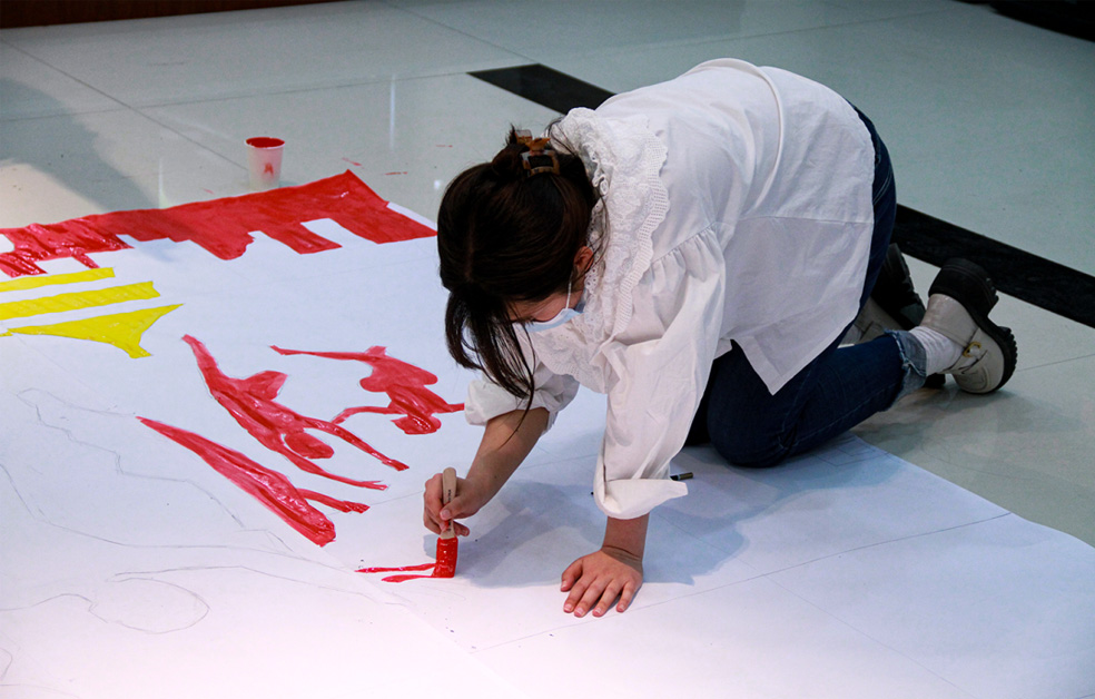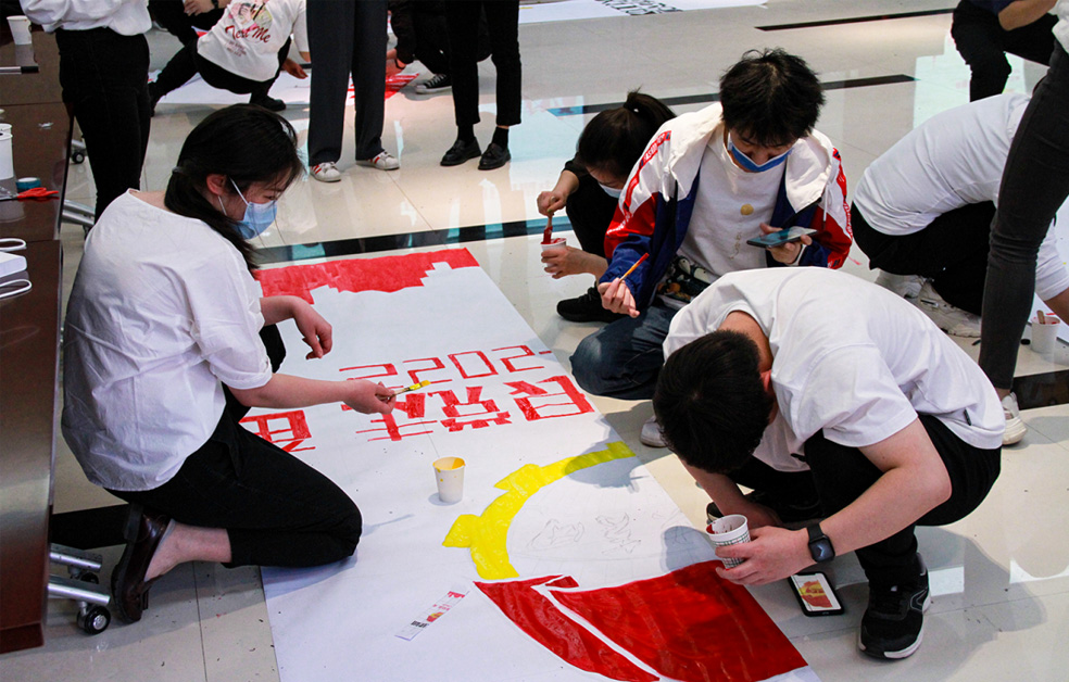 在主題團(tuán)建活動環(huán)節(jié),團(tuán)員青年們紛紛拿起畫筆、調(diào)制顏料、發(fā)揮想象,共同通過繪就《共繪百年光輝》巨畫,抒發(fā)對黨對團(tuán)的熱愛,把對青春的熱情化作斑斕的色彩,為建團(tuán)100周年獻(xiàn)禮。